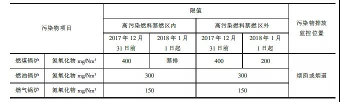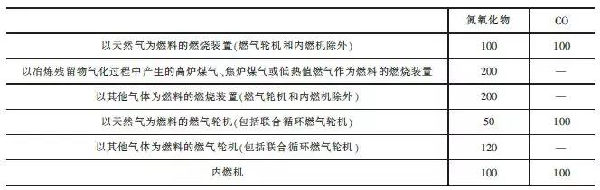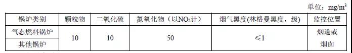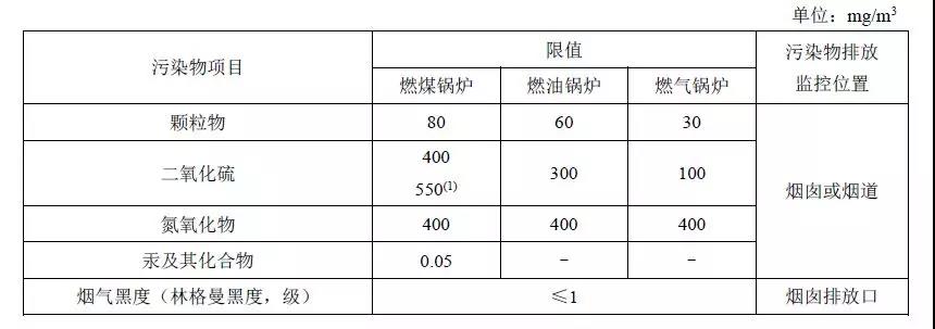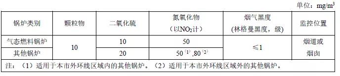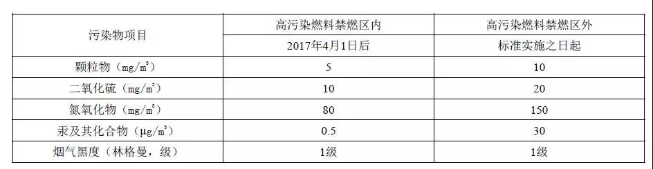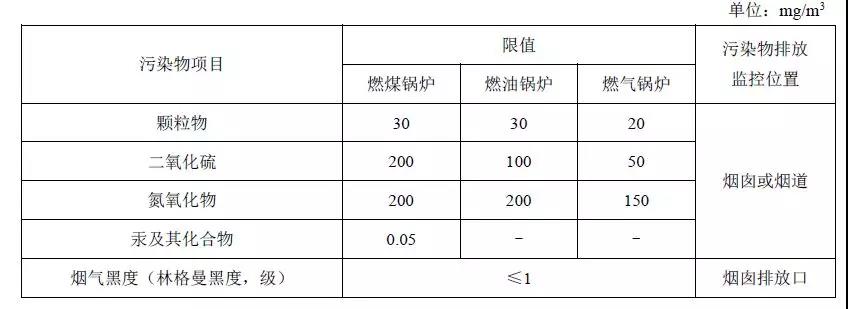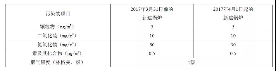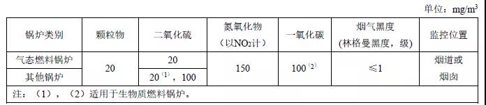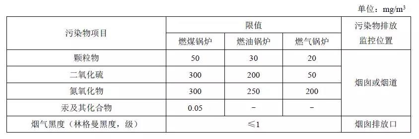 注:自2014年7月1日起新建鍋爐執行表2的排放限值。